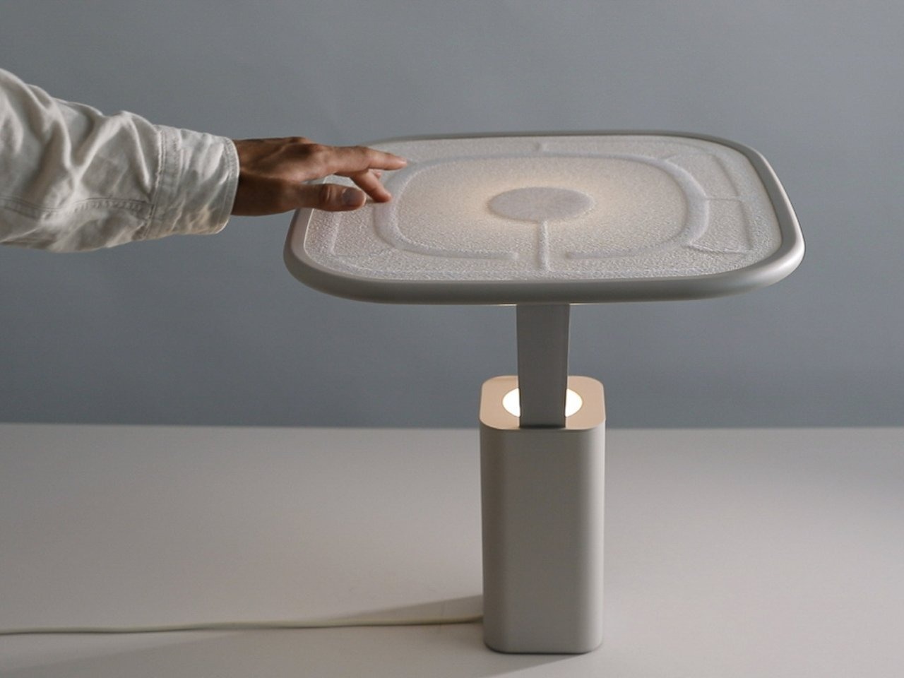 WINT Design Lab has created a unique lighting system by embedding liquid metal into fabric, combining it with their Soft Interface technology. The surface of the light is made of custom knit textiles, and pressing it with your fingers alters the internal circuitry, changing both brightness and color temperature.